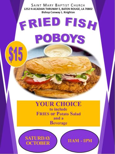 Come out this Saturday between the hours of 11am - 1pm to purchase a fried fish poyboy with your choice of french fries or potato salad and ...